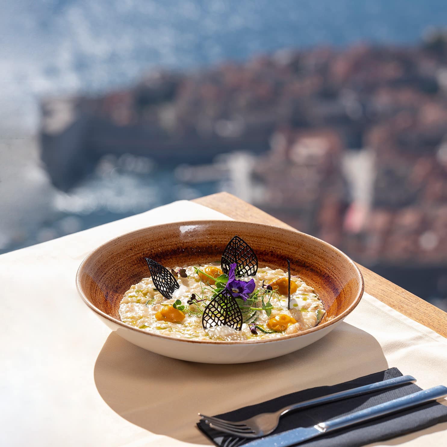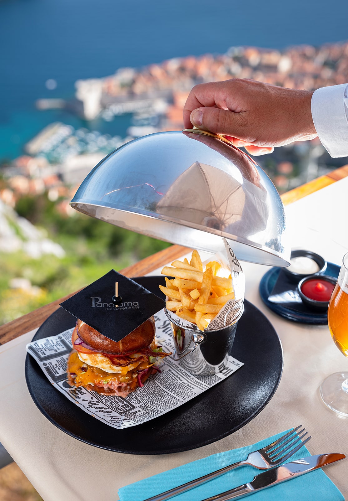 Situated next to the cable car station on Srđ hill, a top destination in Dubrovnik, this restaurant lets you enjoy your meal surrounded by the beauty of the Old Town below and Lokrum Island nearby.